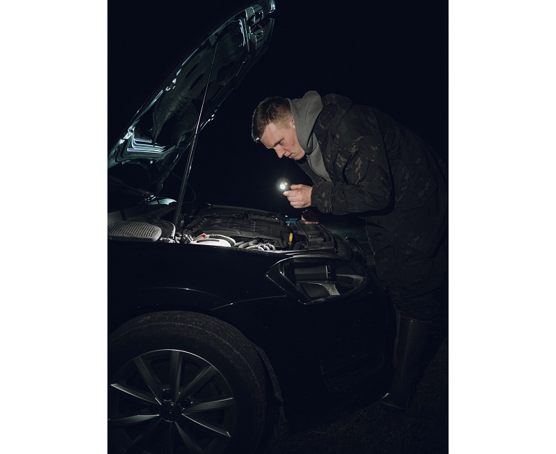 - A zseblámpa könnyen fel- és levehető, és 180°-ban elforgatható a tartóban